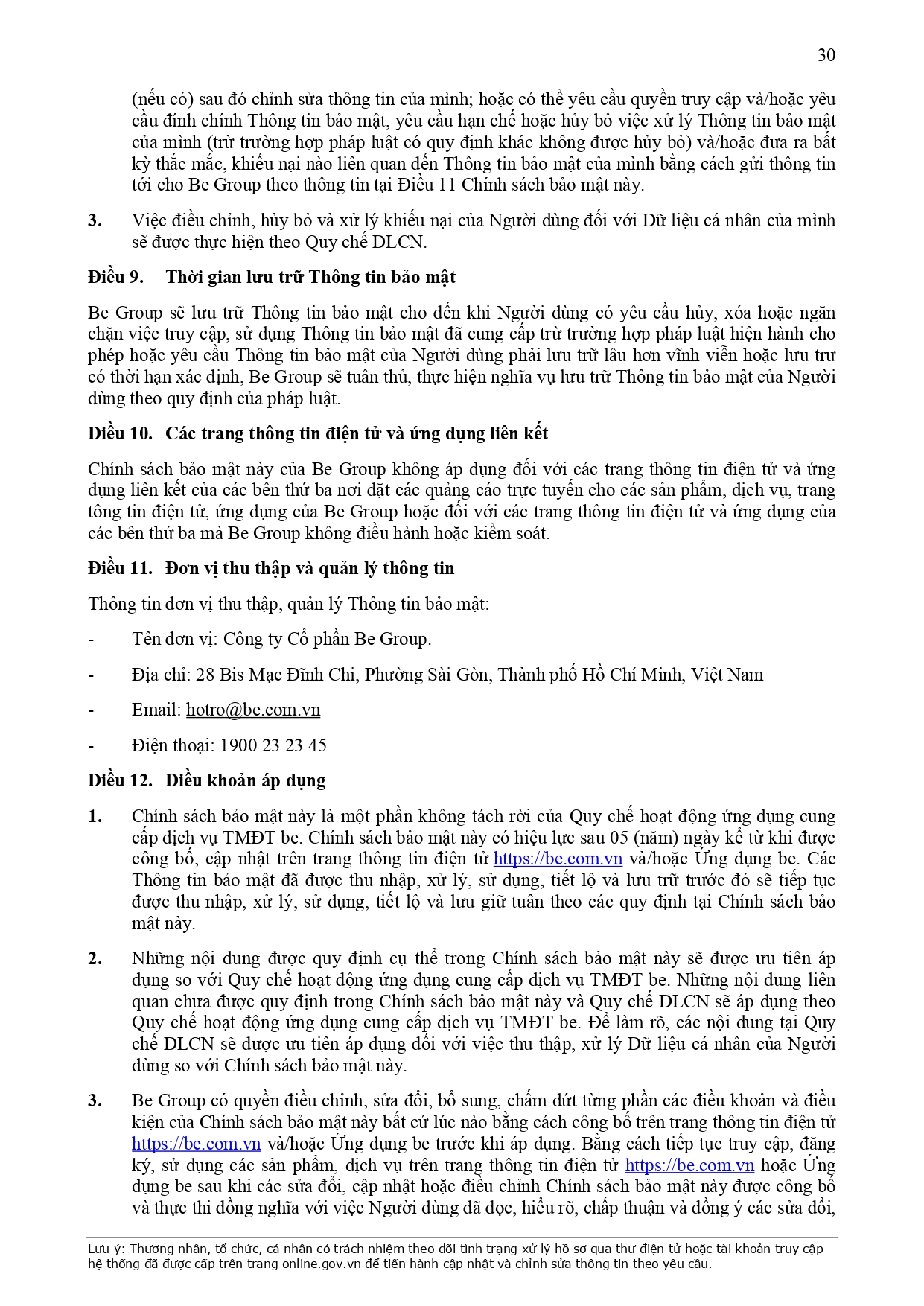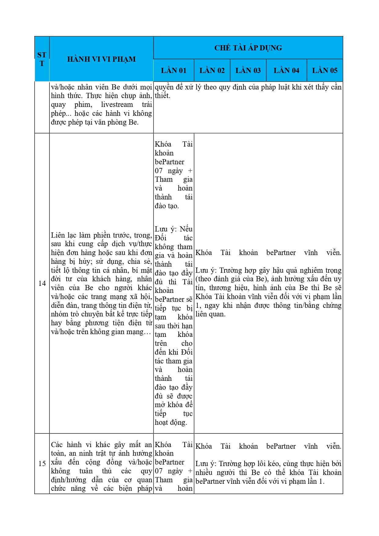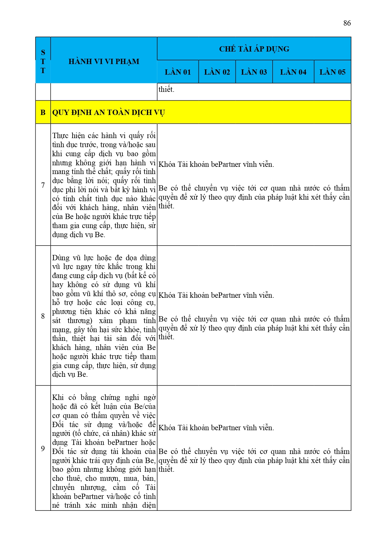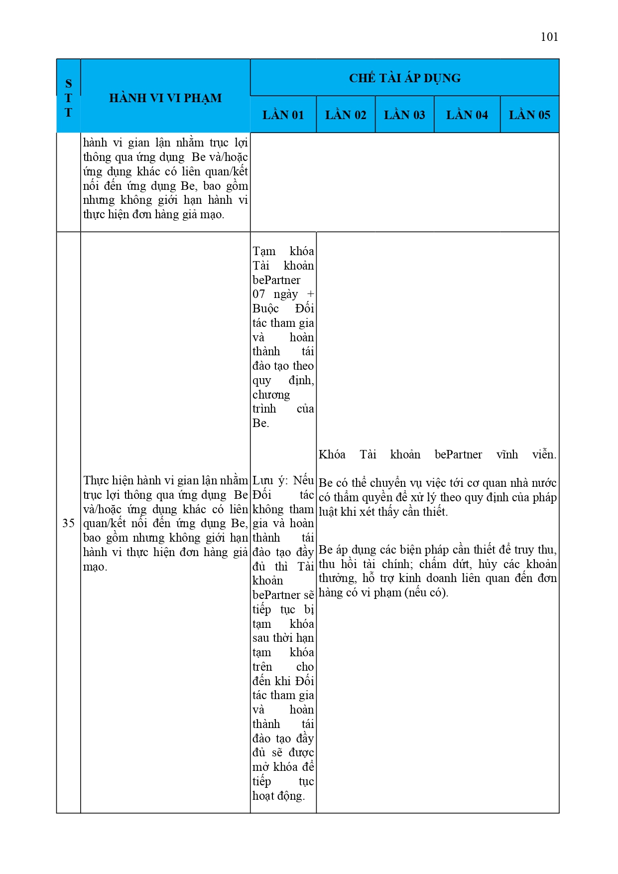 CHÍNH SÁCH QUẢN LÝ VÀ KIỂM SOÁT THÔNG TIN TRÊN ỨNG DỤNG BE