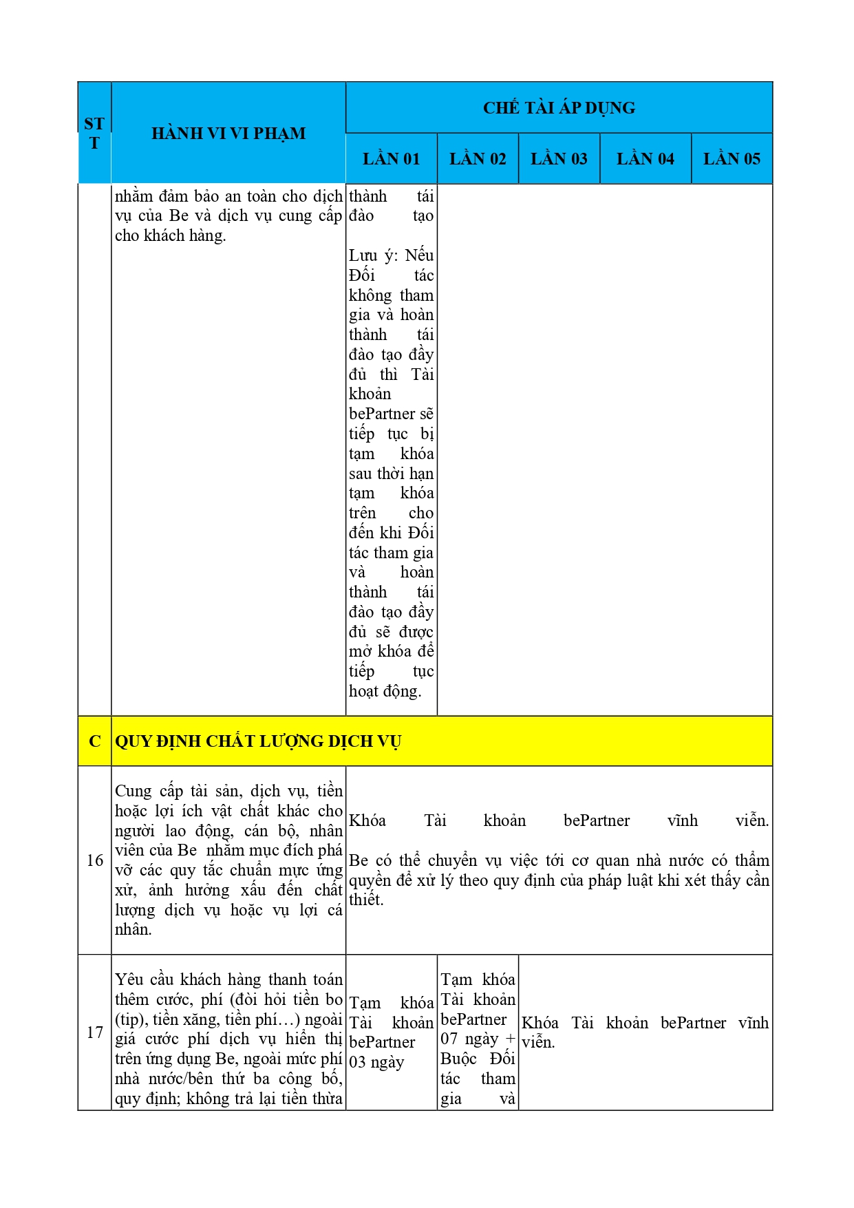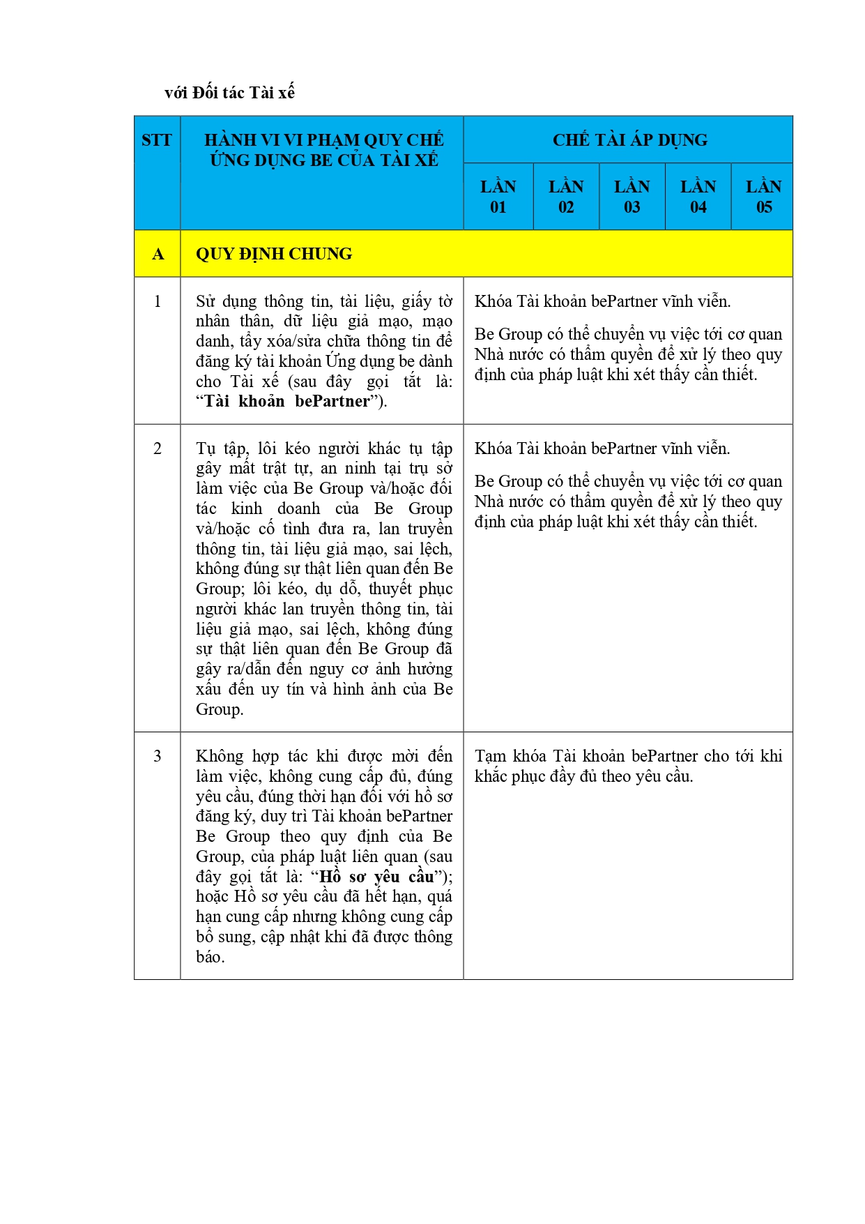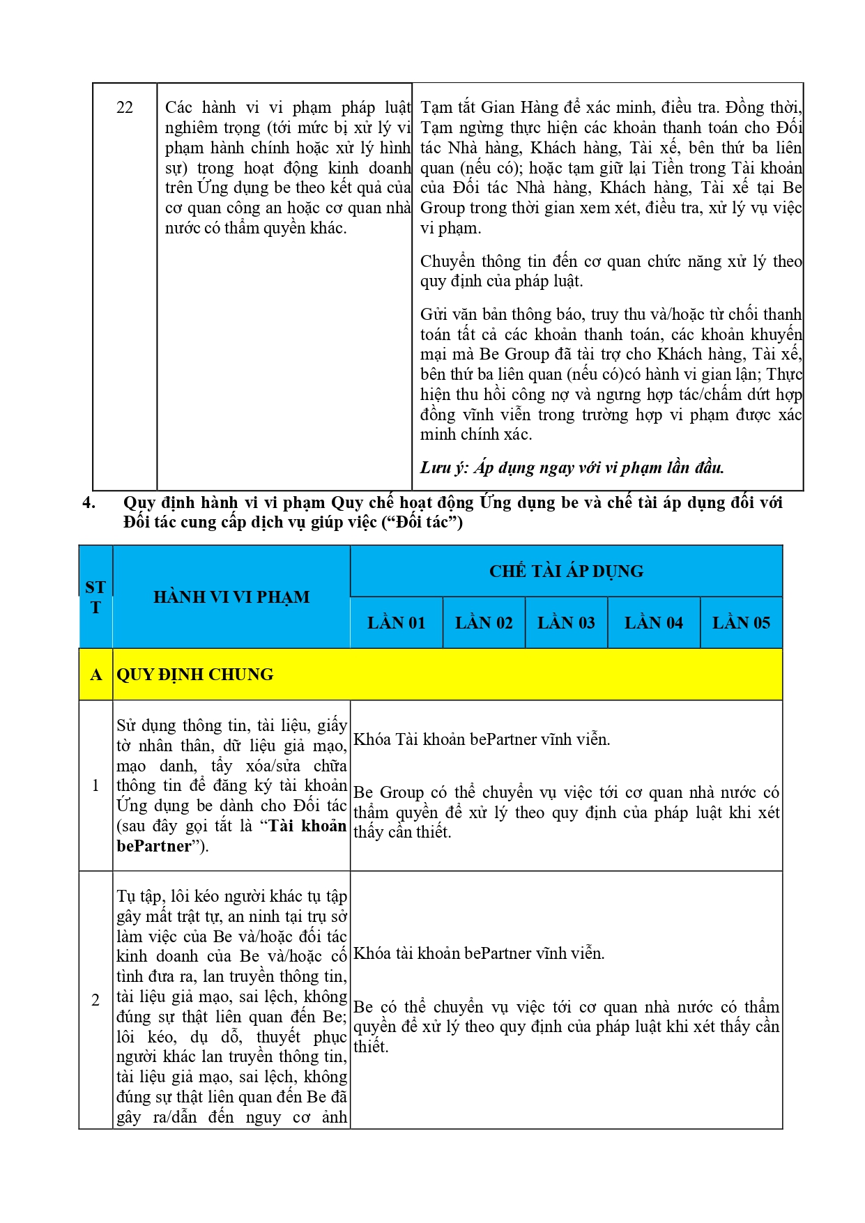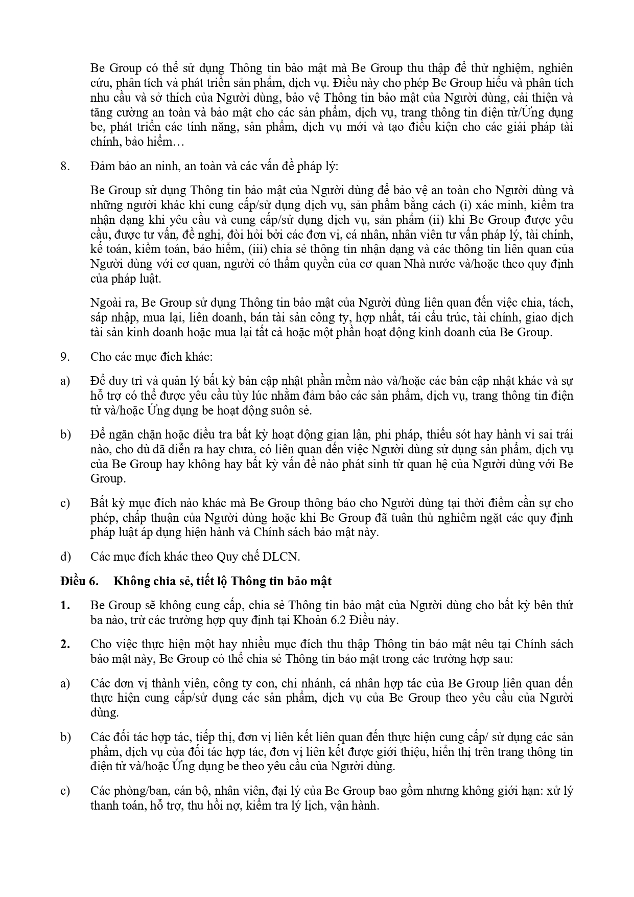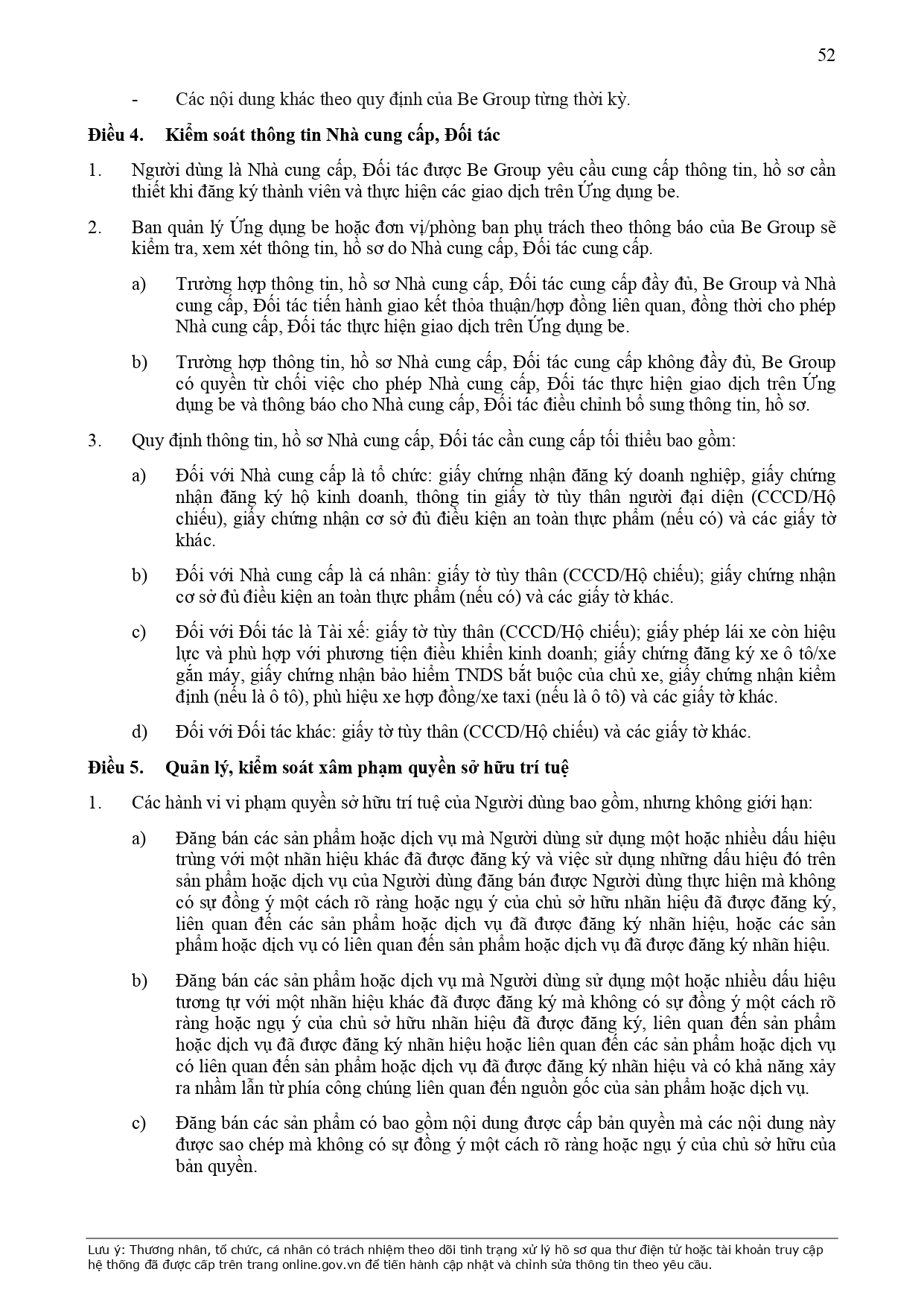 CHÍNH SÁCH QUẢN LÝ VÀ KIỂM SOÁT THÔNG TIN TRÊN ỨNG DỤNG BE