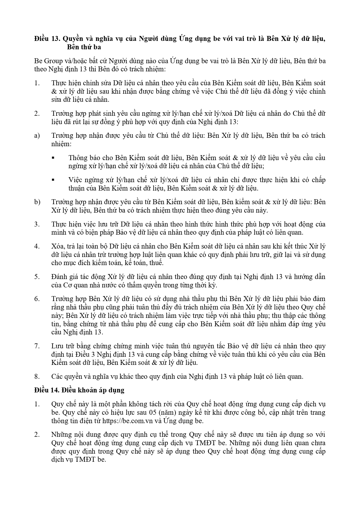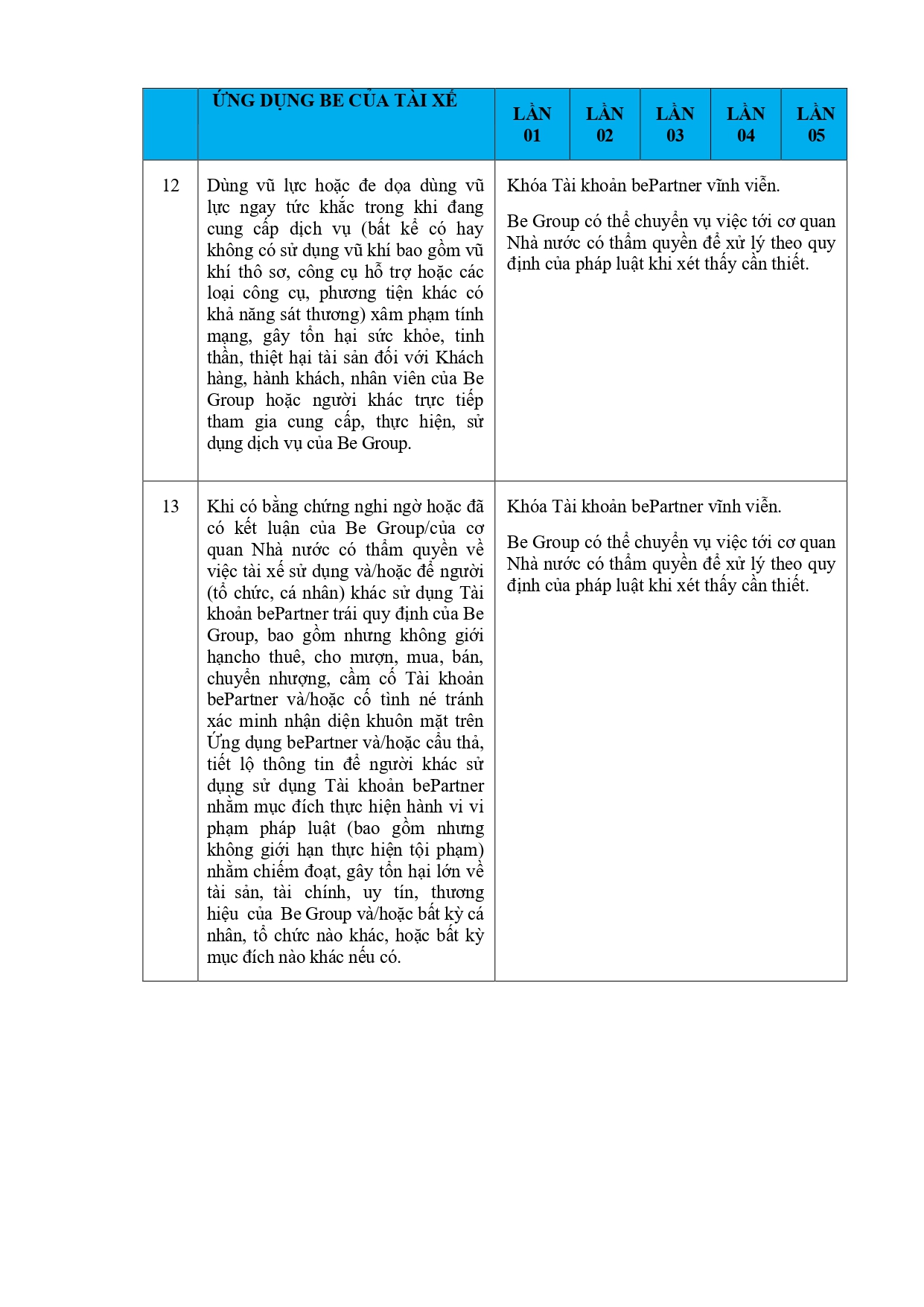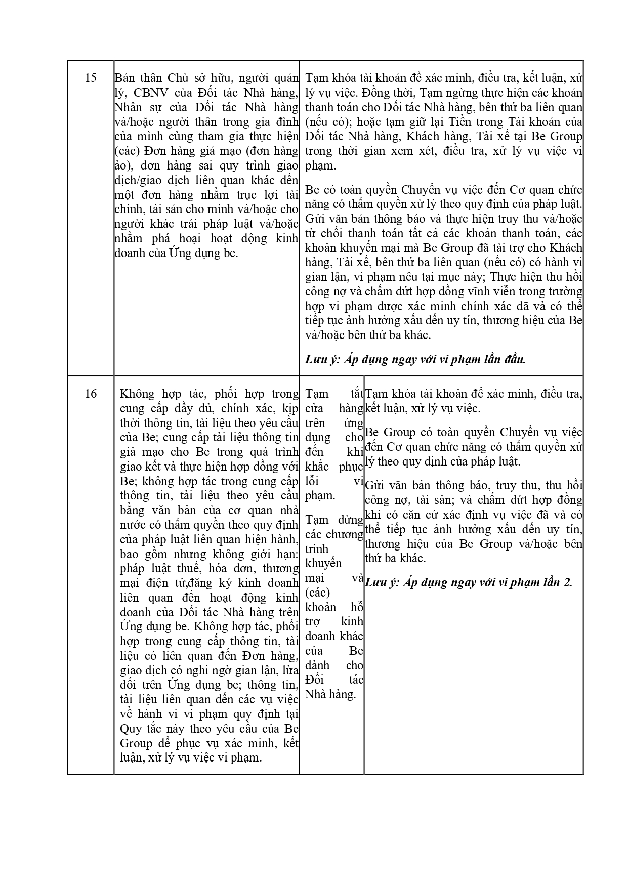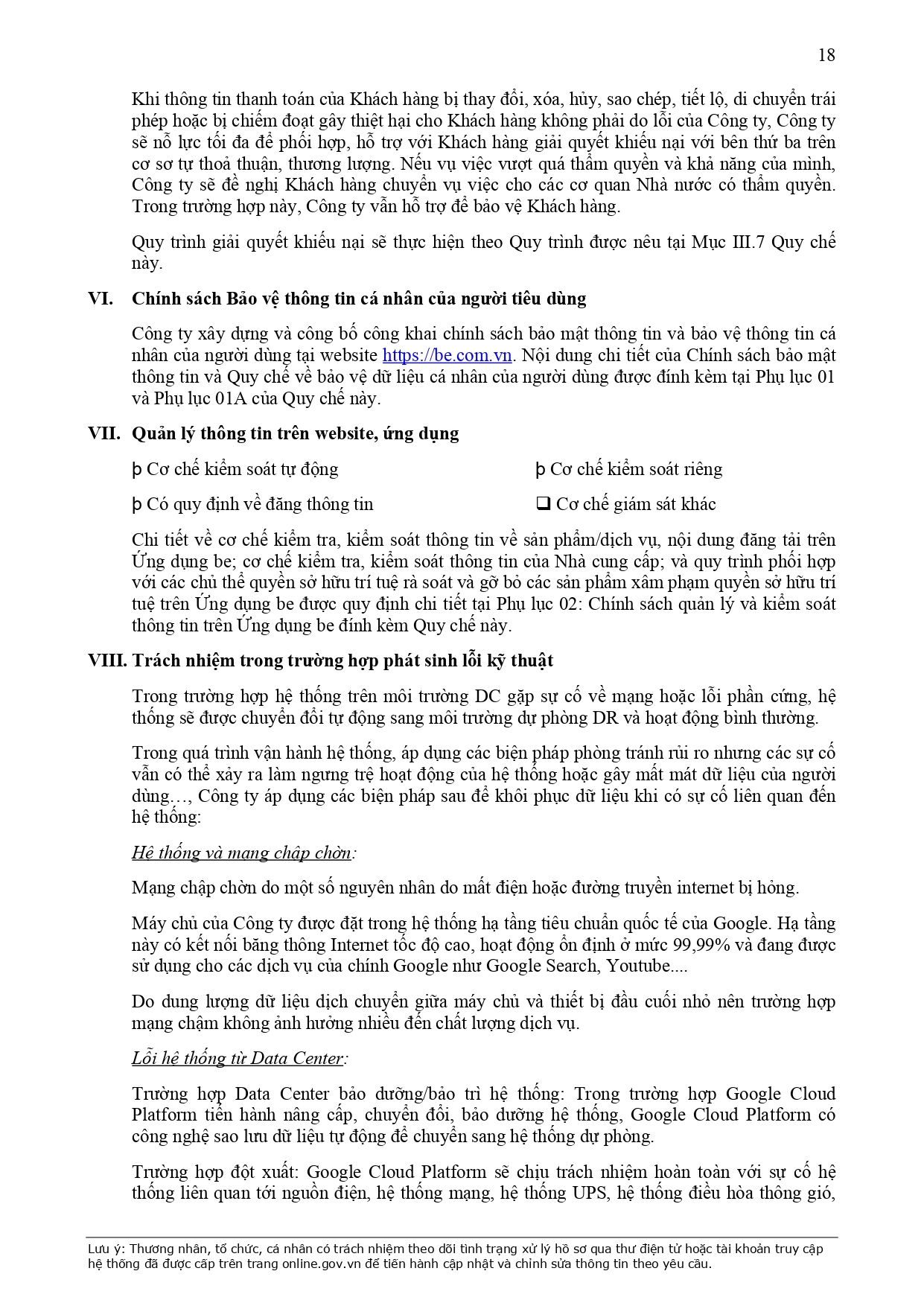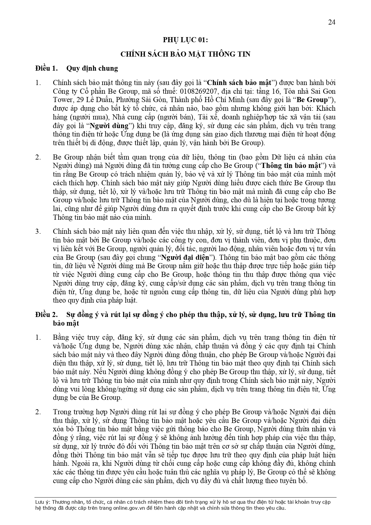 CHÍNH SÁCH QUẢN LÝ VÀ KIỂM SOÁT THÔNG TIN TRÊN ỨNG DỤNG BE