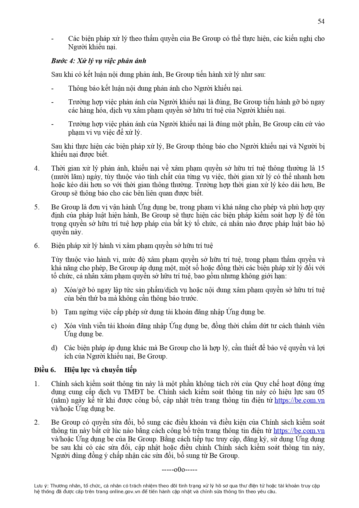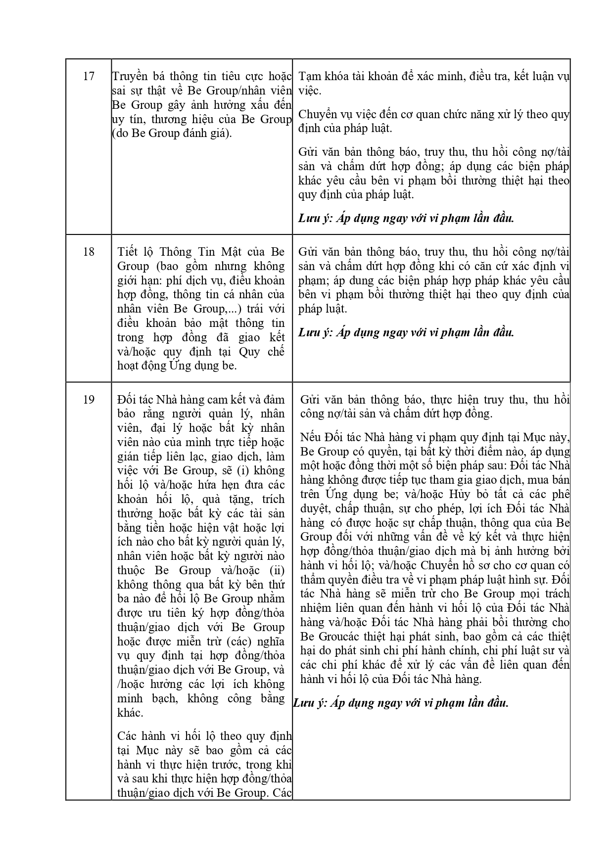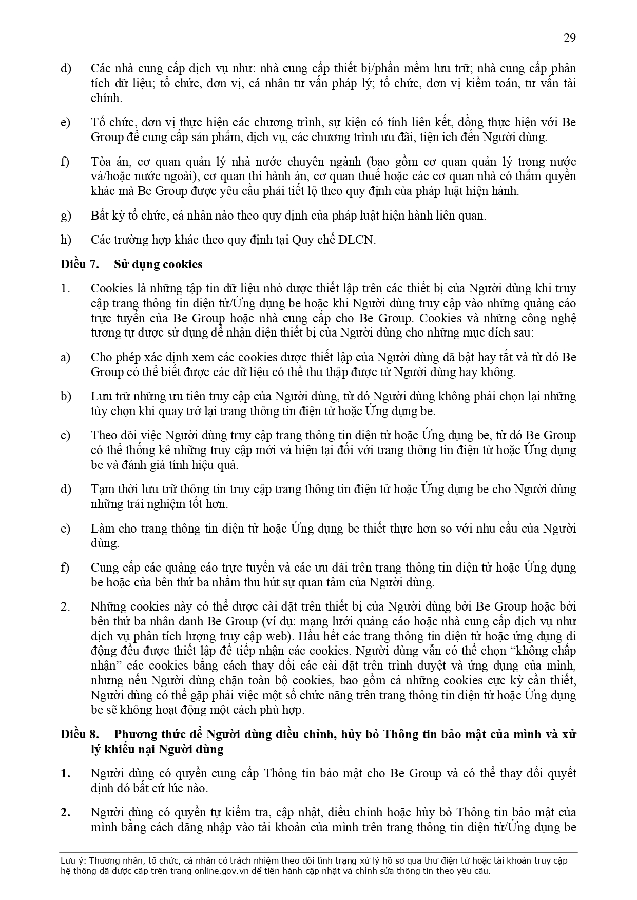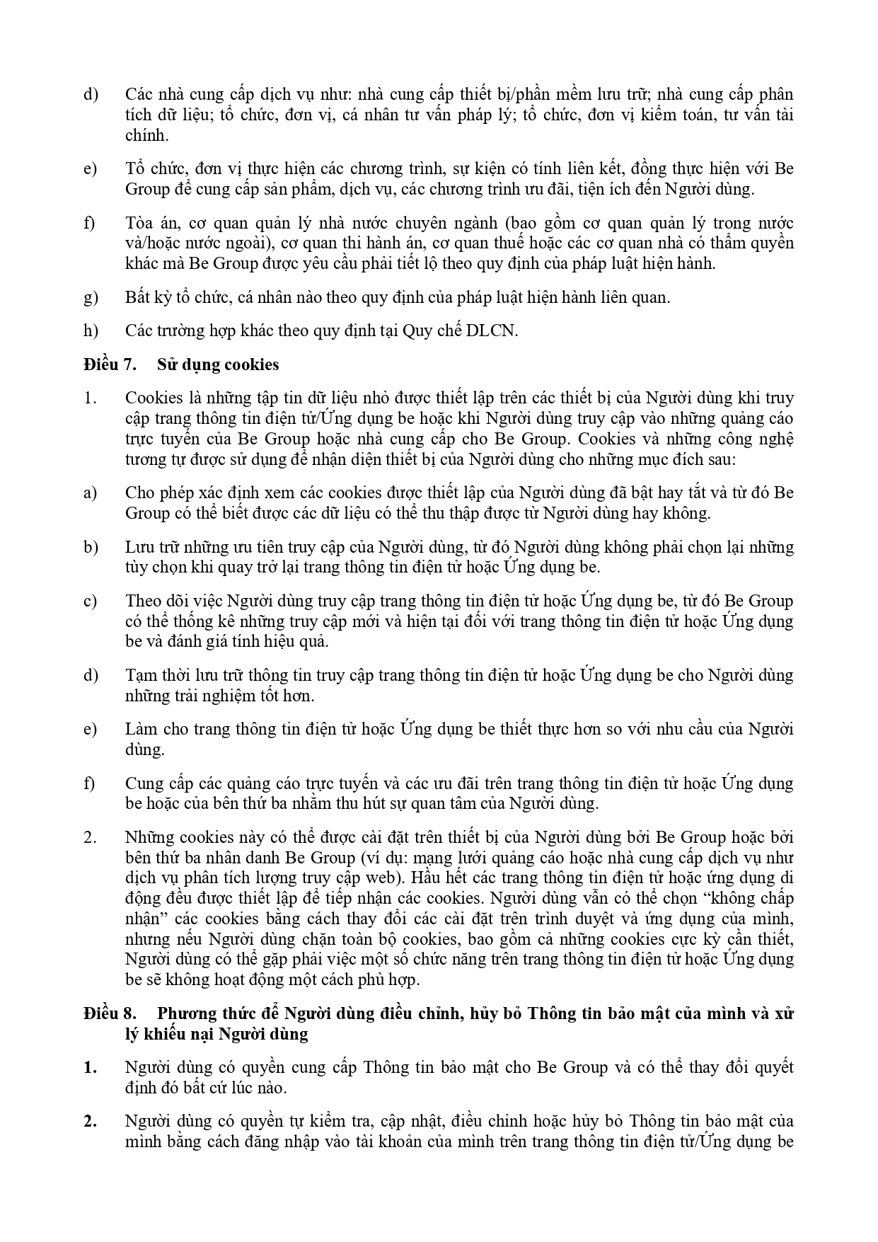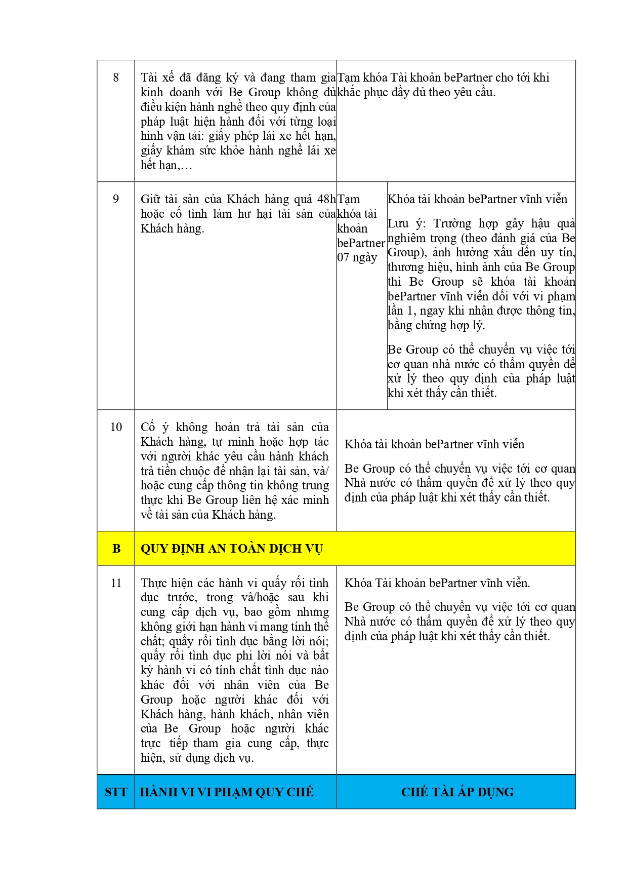 CHÍNH SÁCH QUẢN LÝ VÀ KIỂM SOÁT THÔNG TIN TRÊN ỨNG DỤNG BE