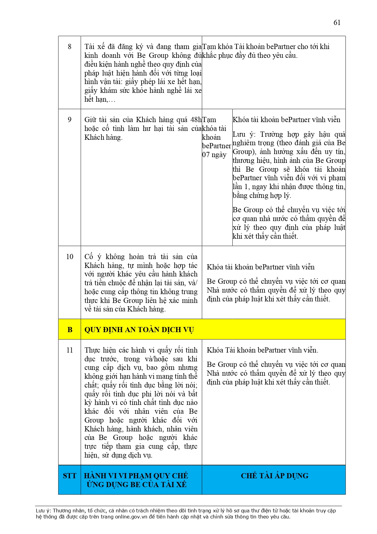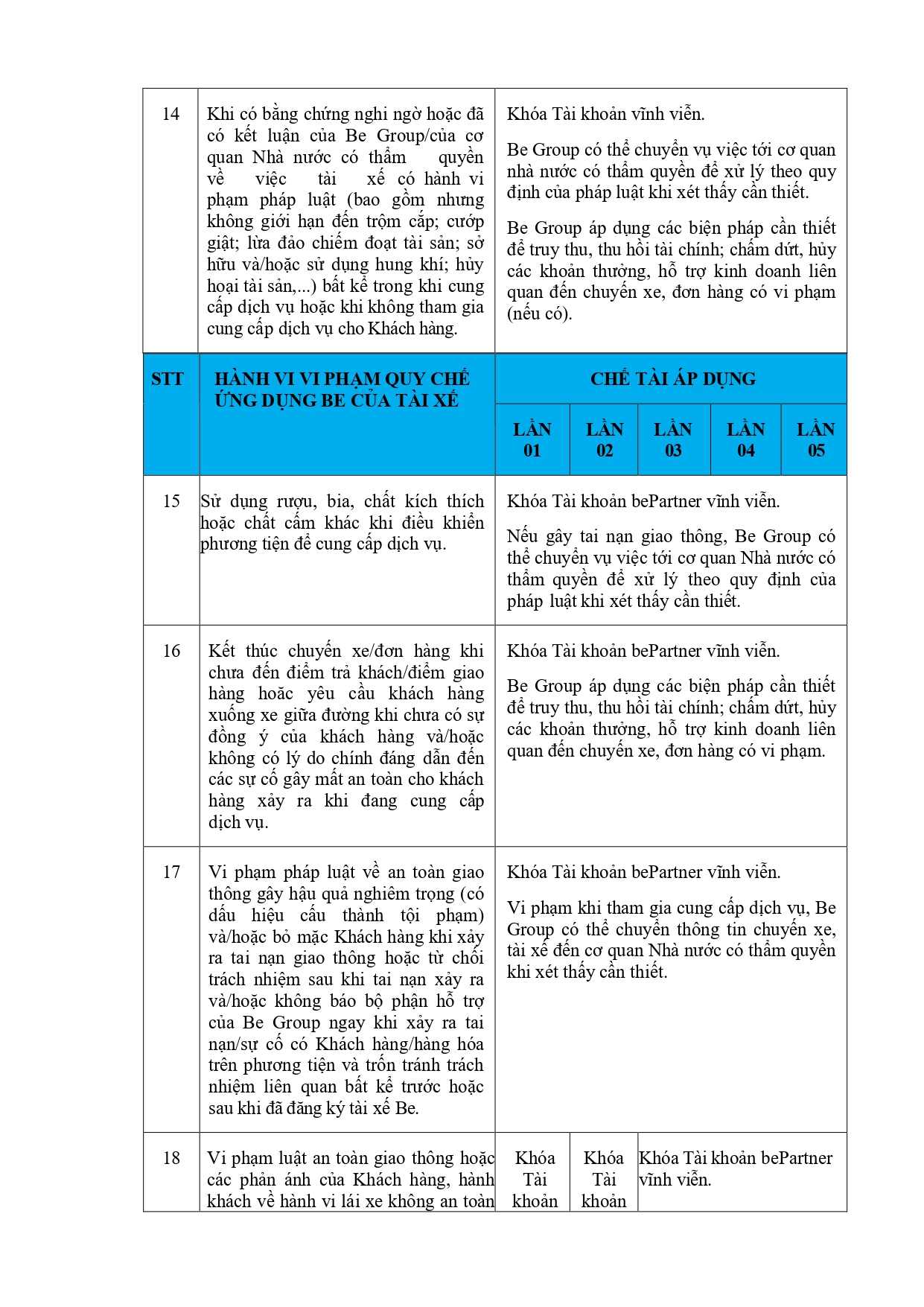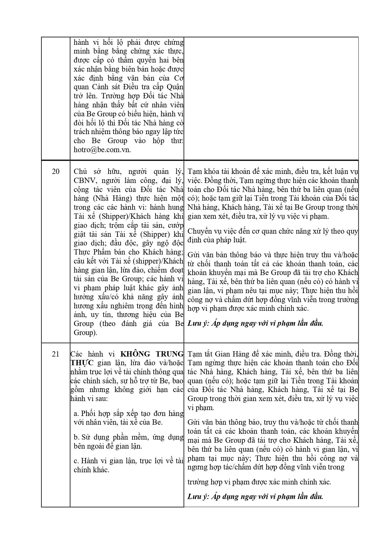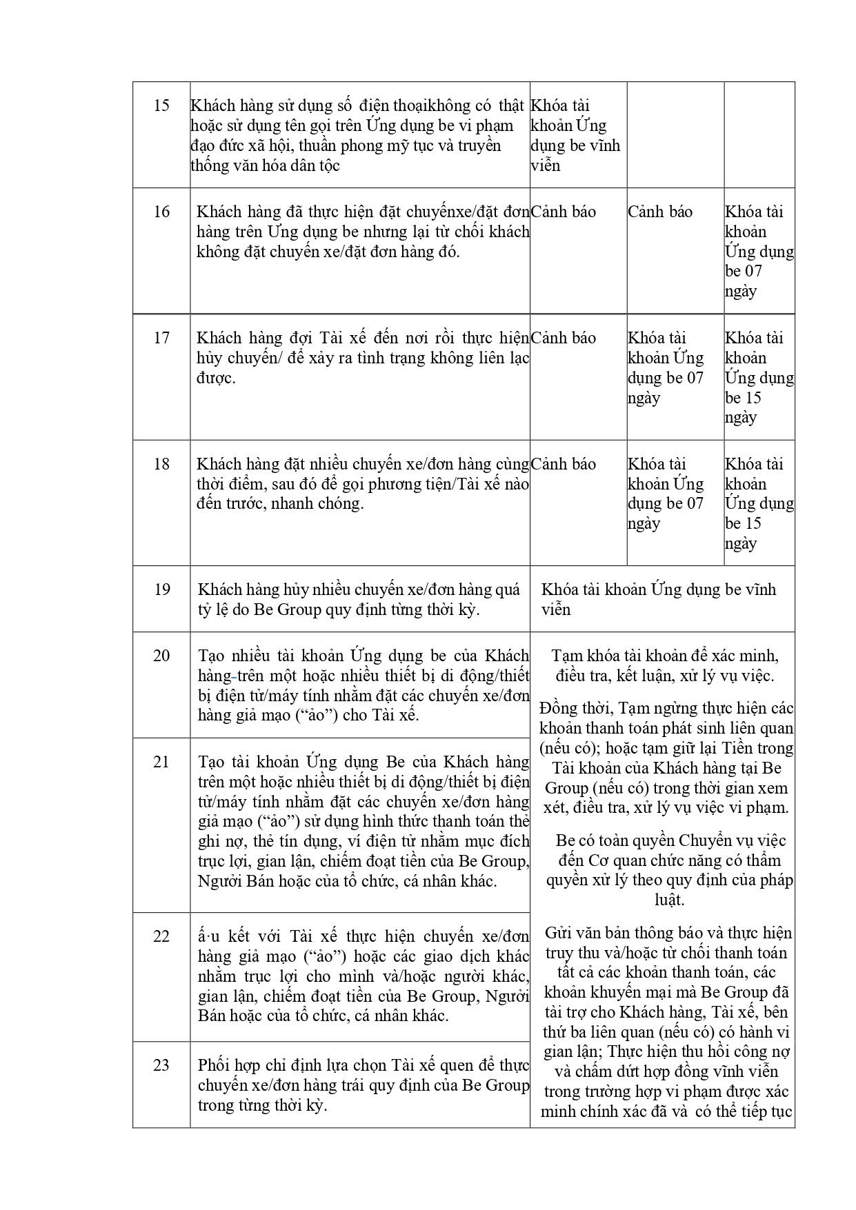 CHÍNH SÁCH QUẢN LÝ VÀ KIỂM SOÁT THÔNG TIN TRÊN ỨNG DỤNG BE