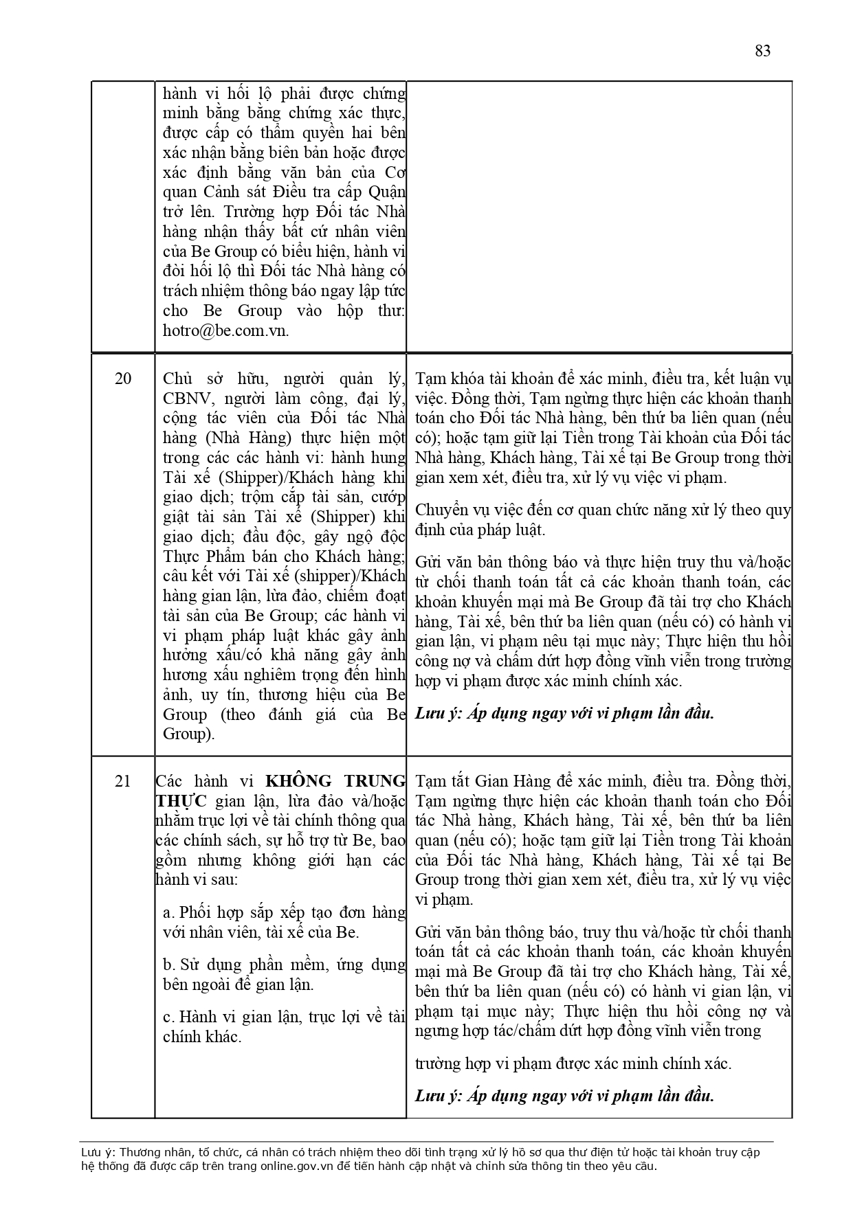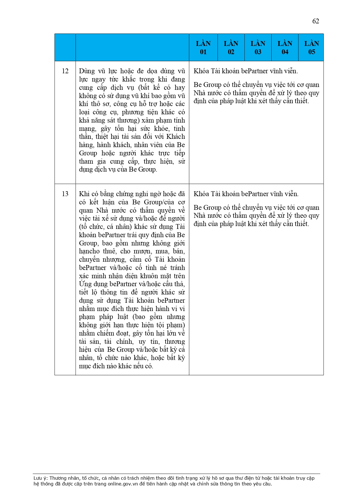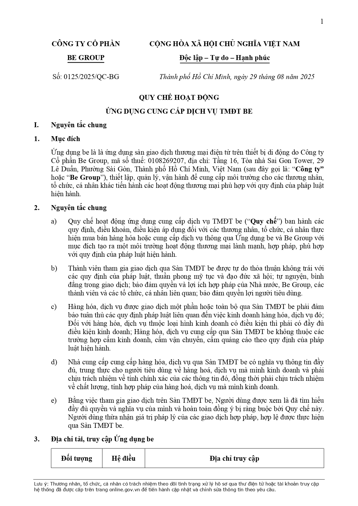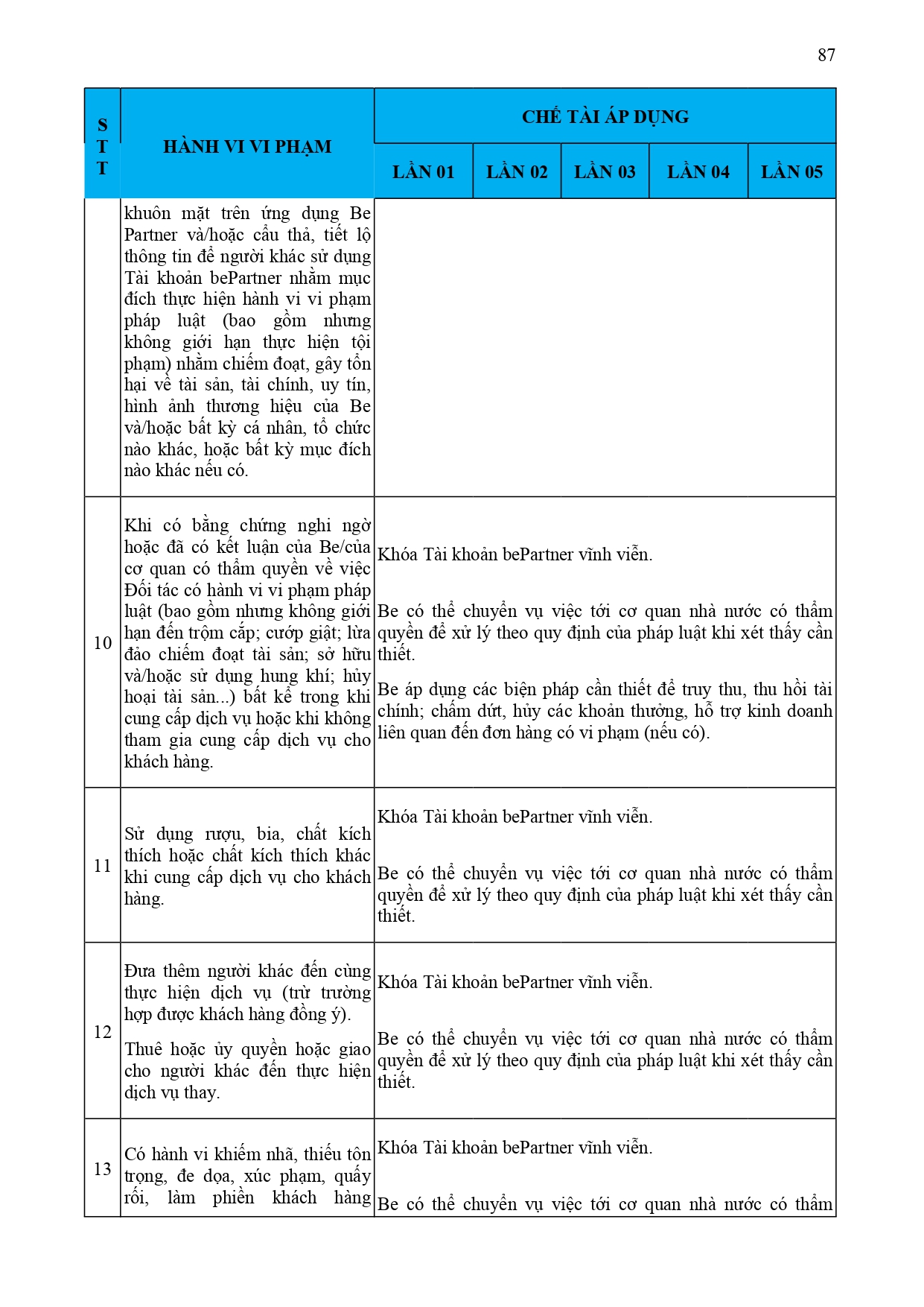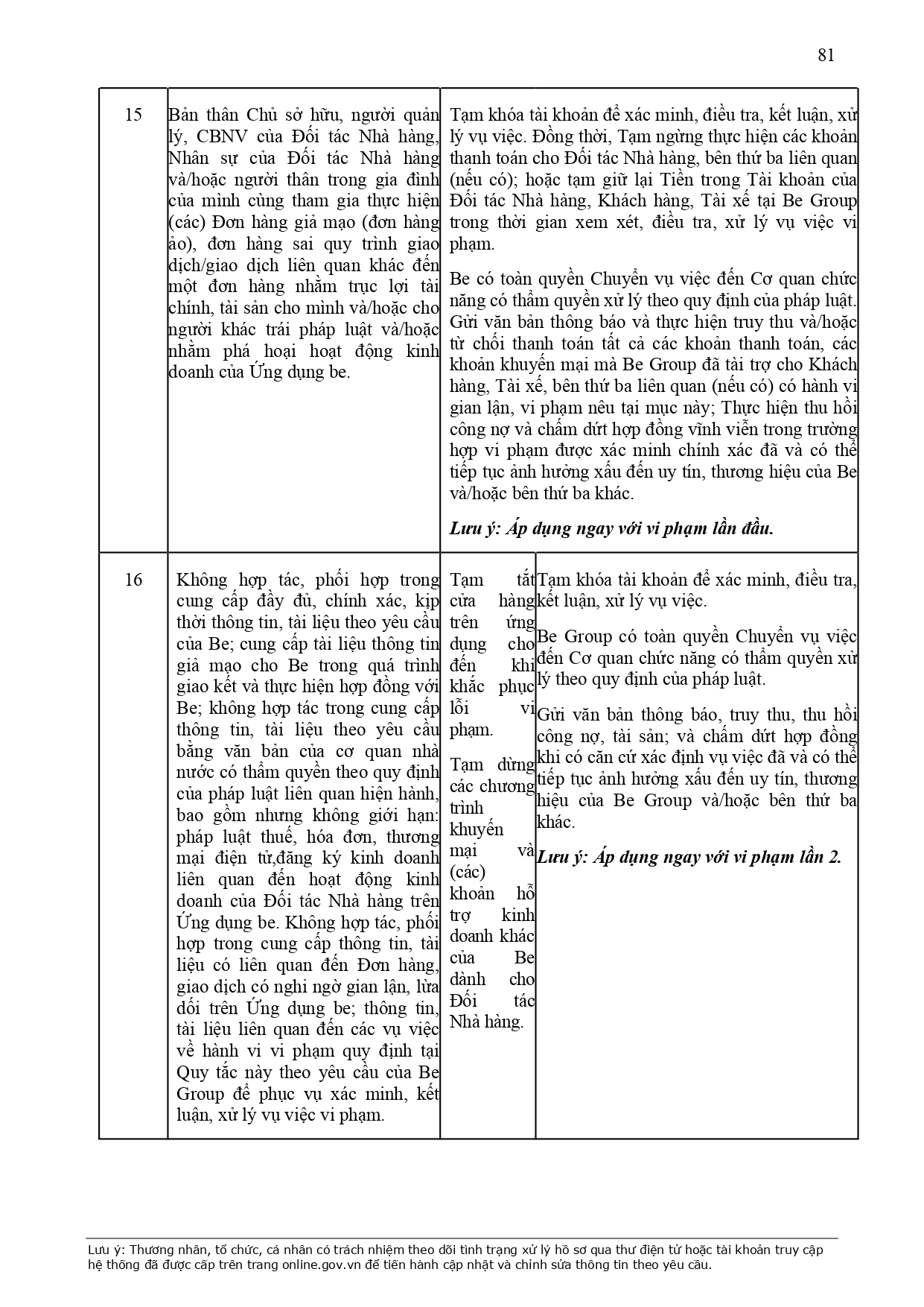 CHÍNH SÁCH QUẢN LÝ VÀ KIỂM SOÁT THÔNG TIN TRÊN ỨNG DỤNG BE