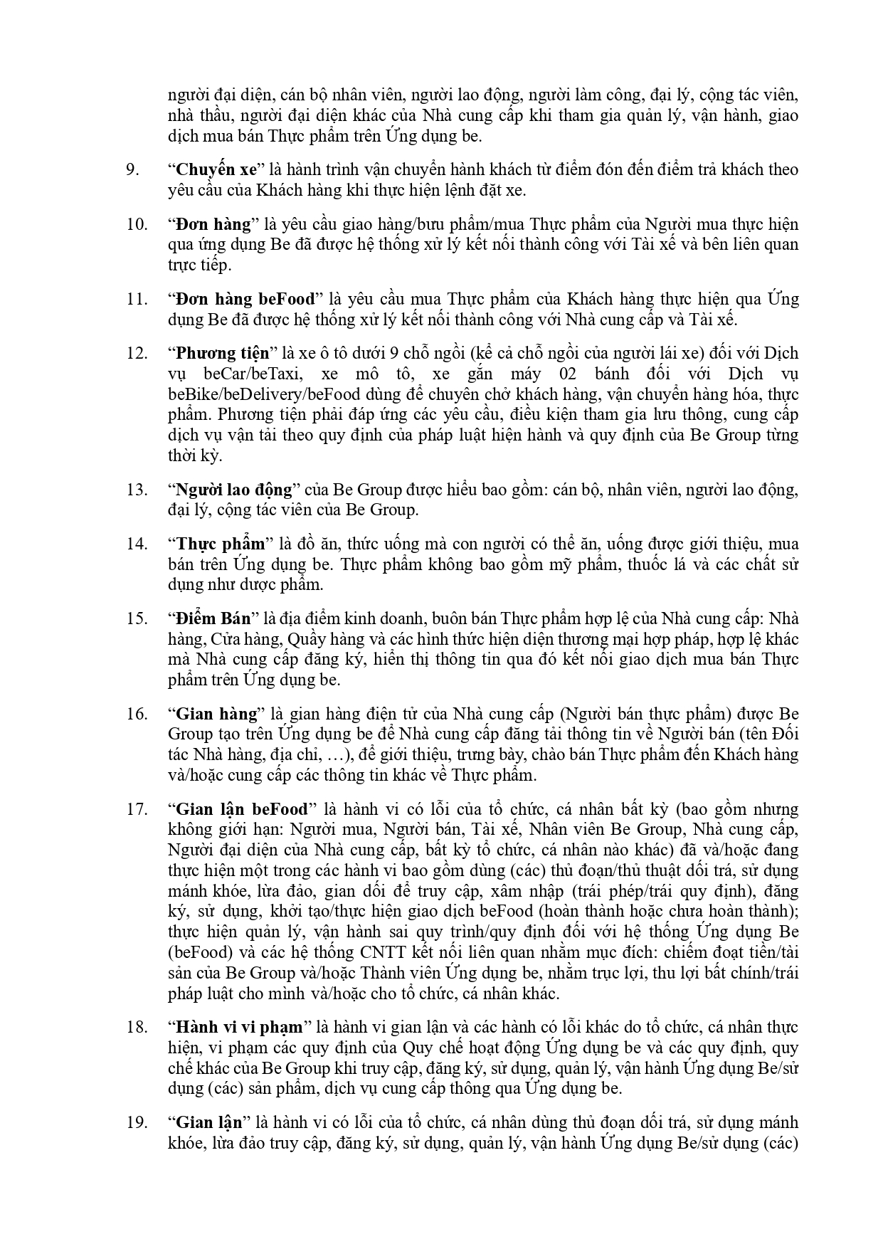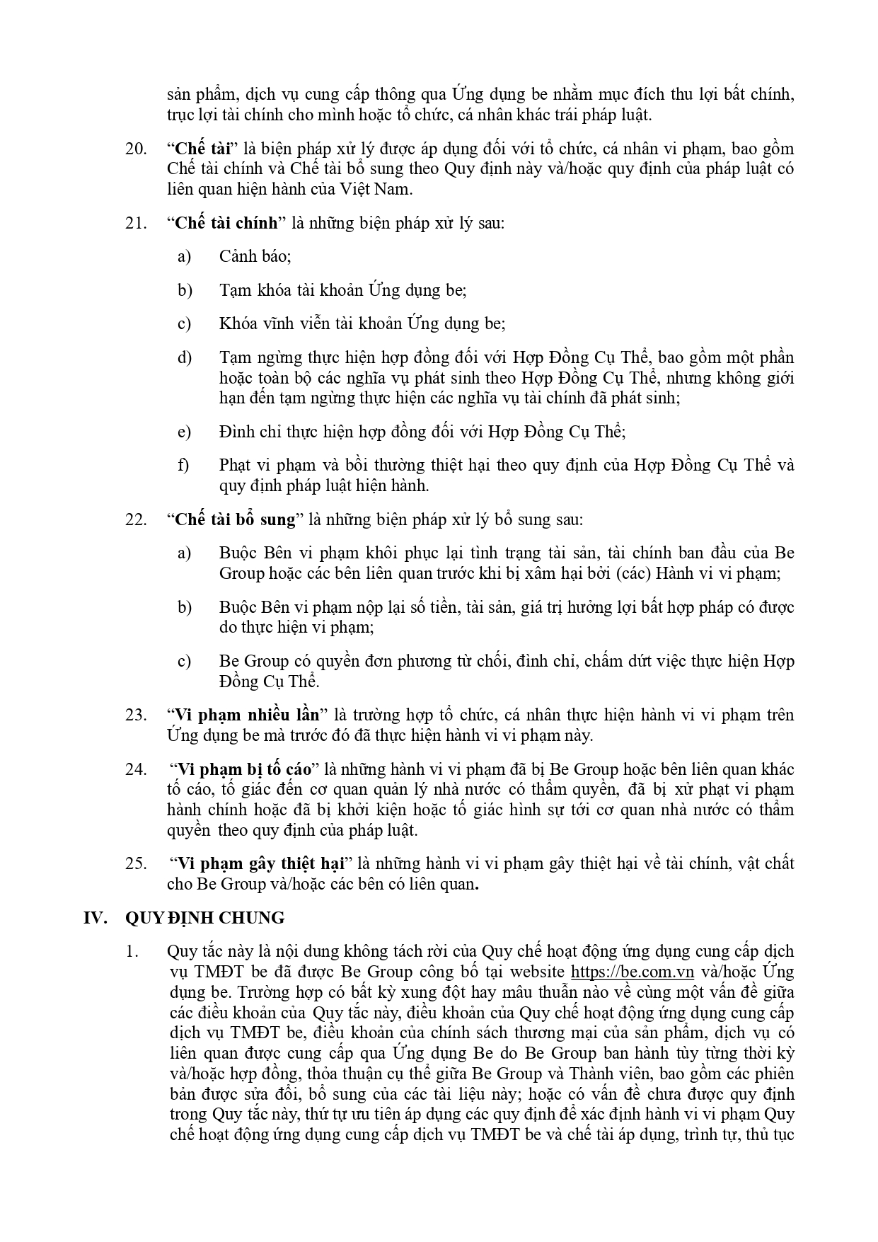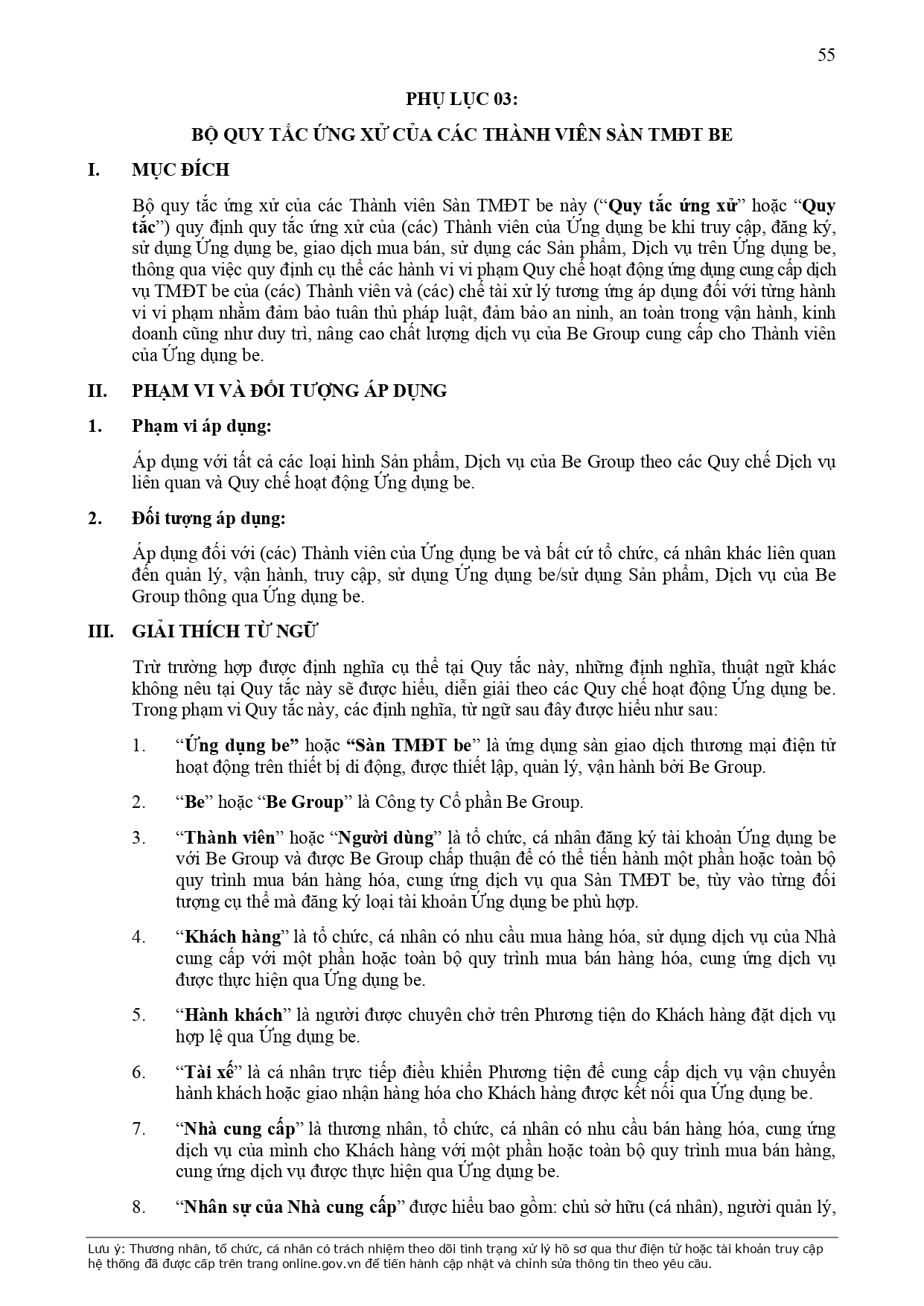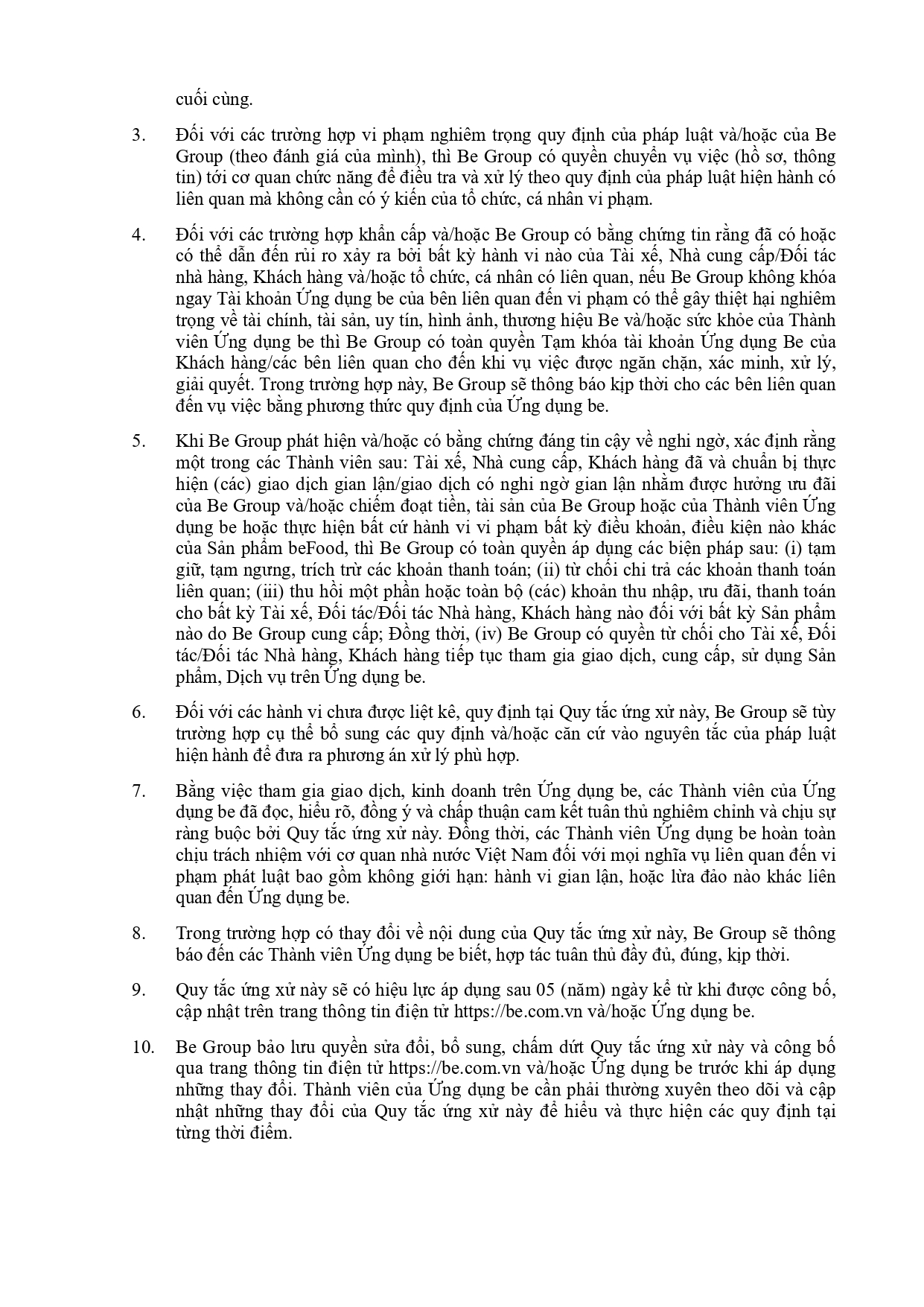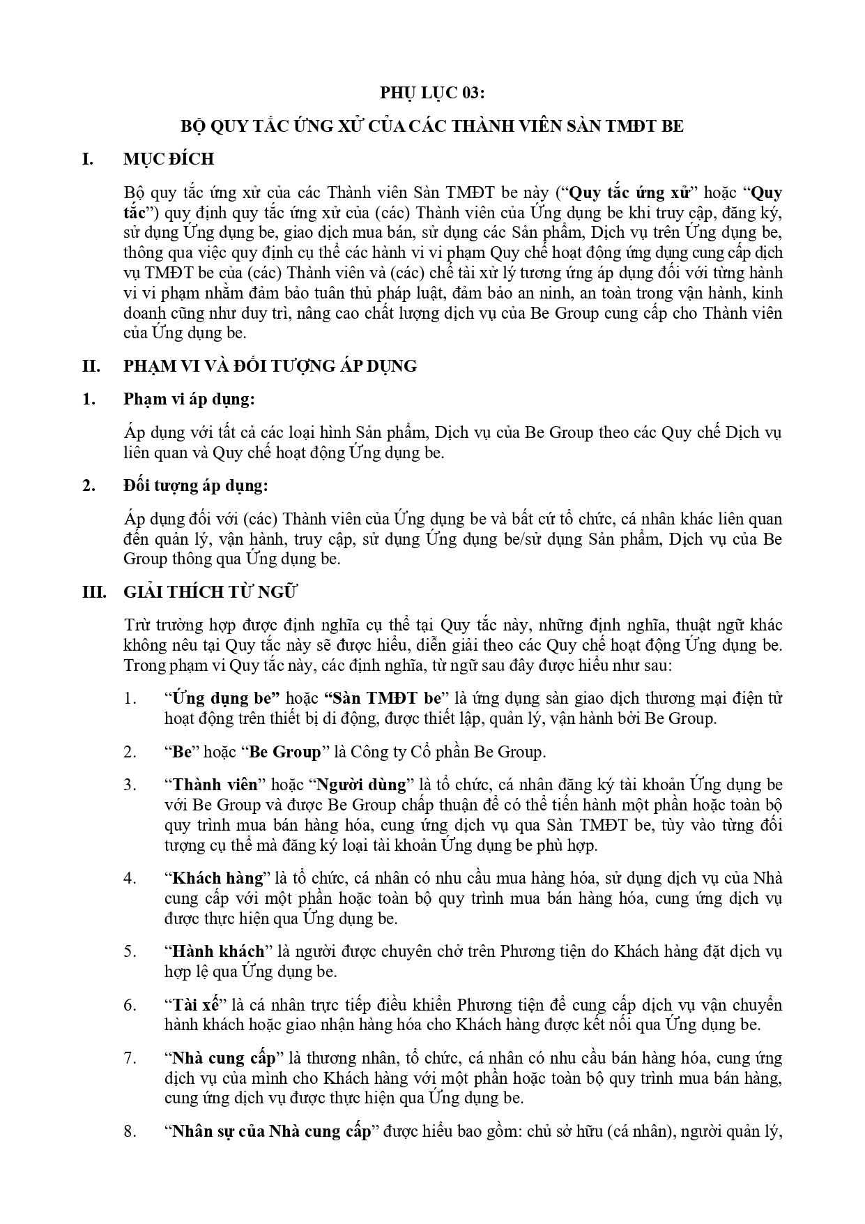 BỘ QUY TẮC ỨNG XỬ CỦA CÁC THÀNH VIÊN SÀN TMĐT BE