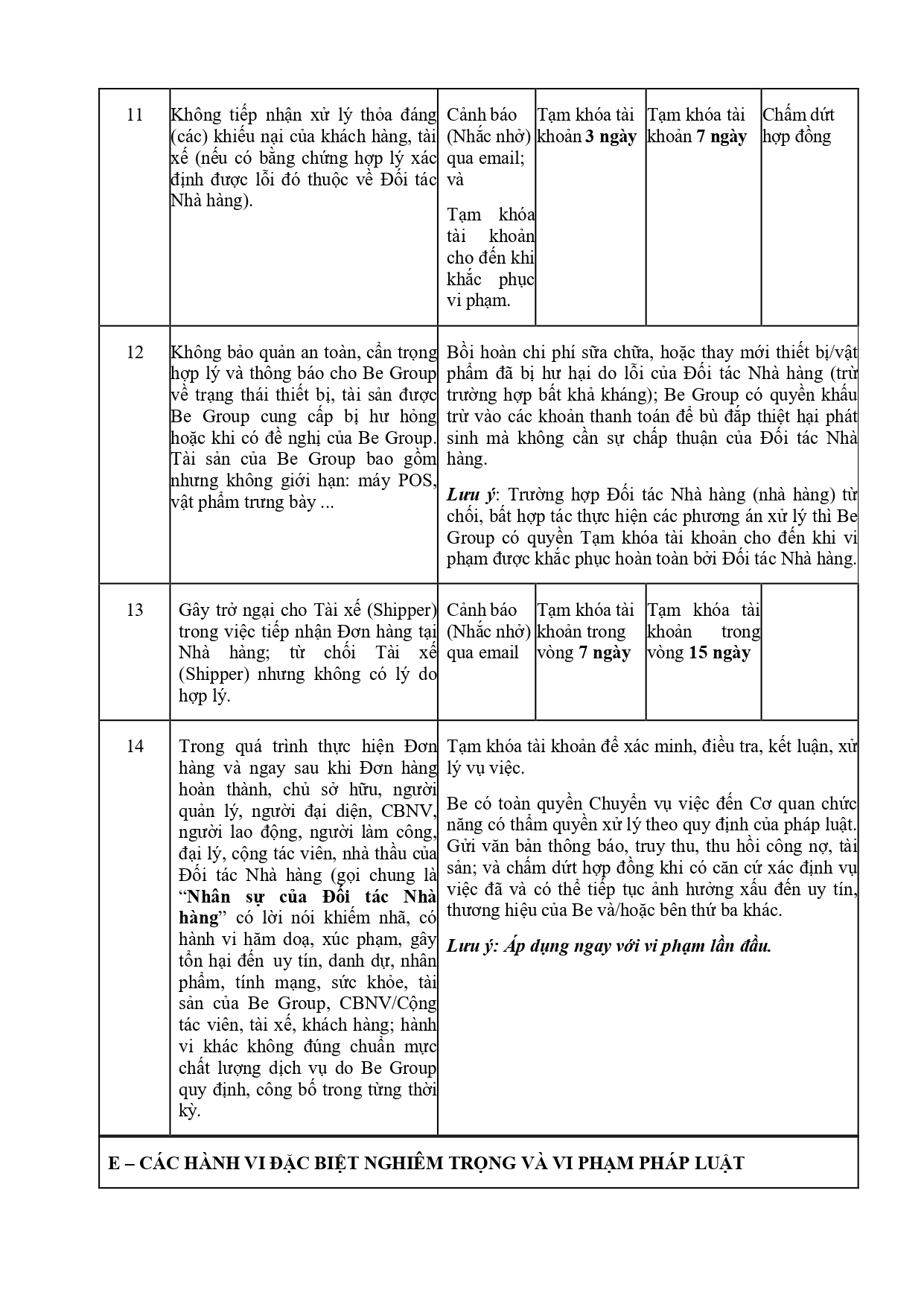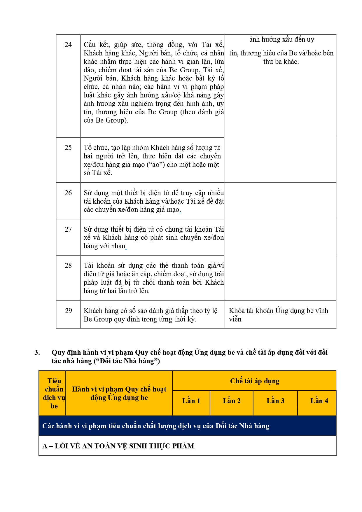 Bộ Quy Tắc Ứng Xử Của Đối Tác Nhà Hàng
