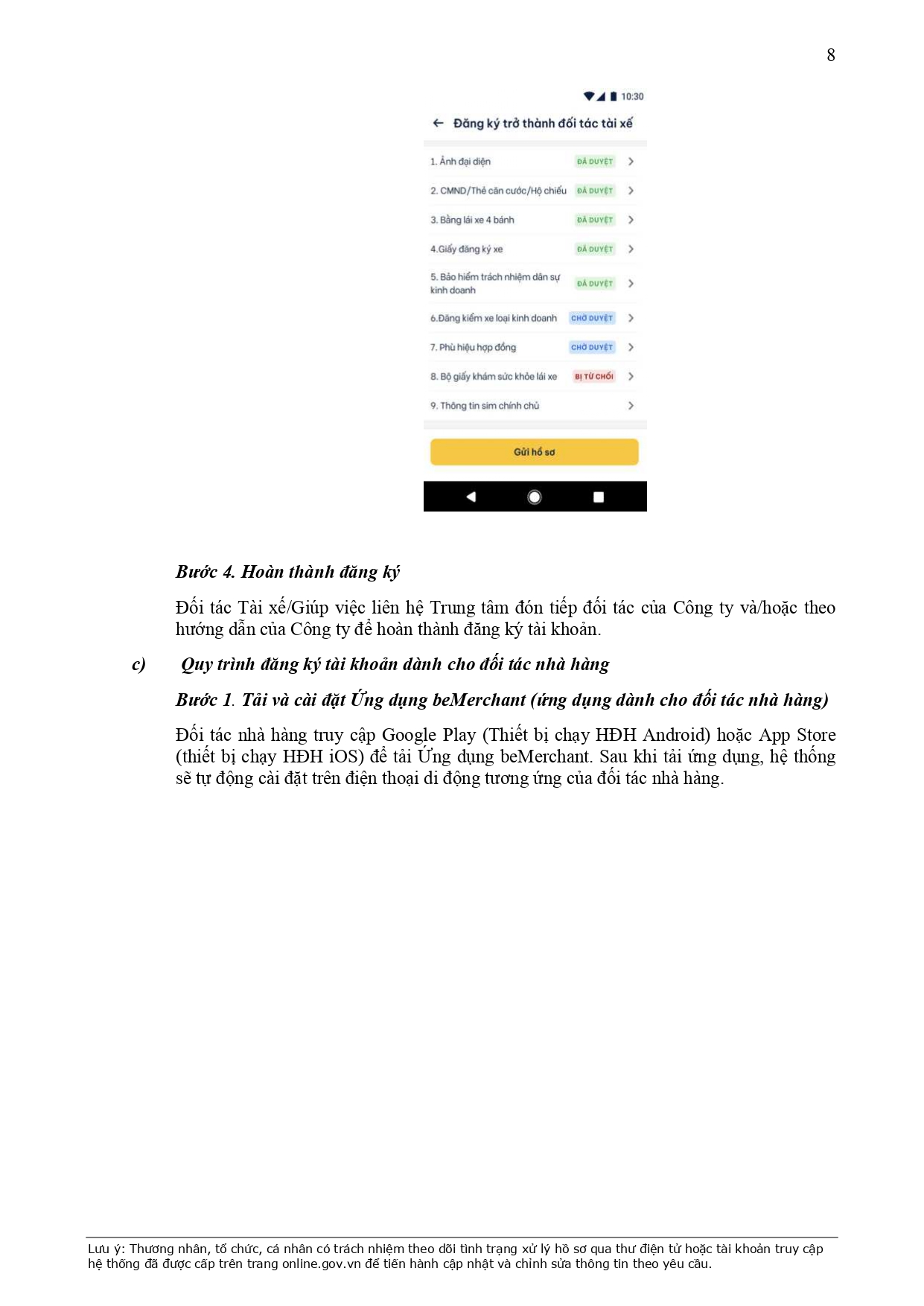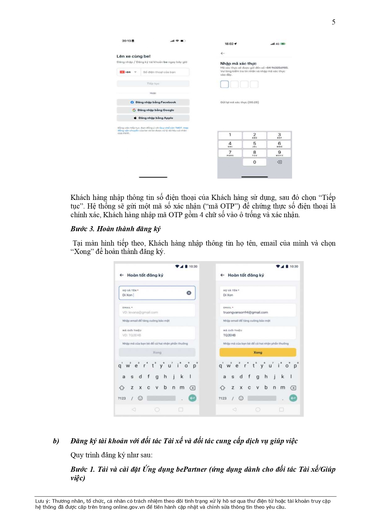 Đăng ký tài xế Be online