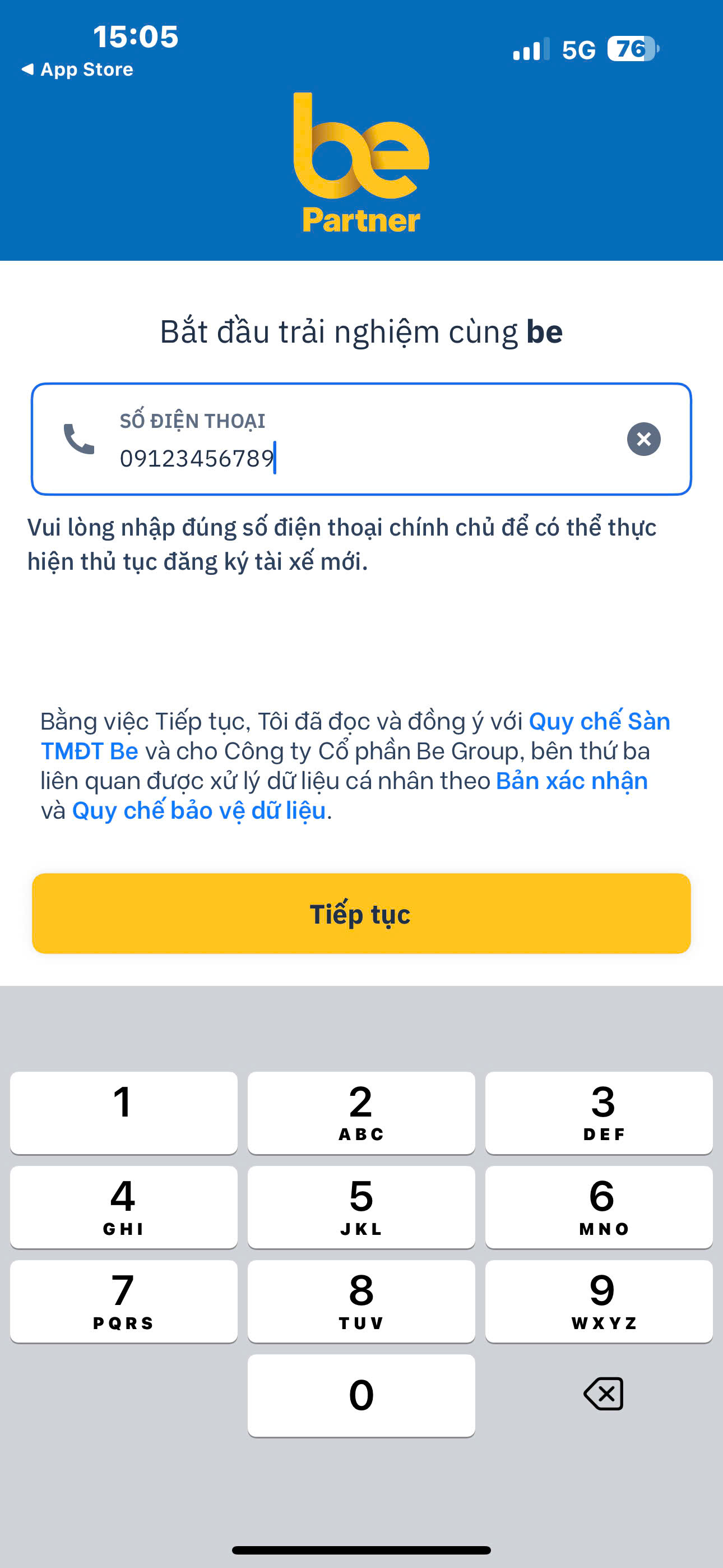 1. Truy cập ứng dụng bePatner vừa tải trên điện thoại