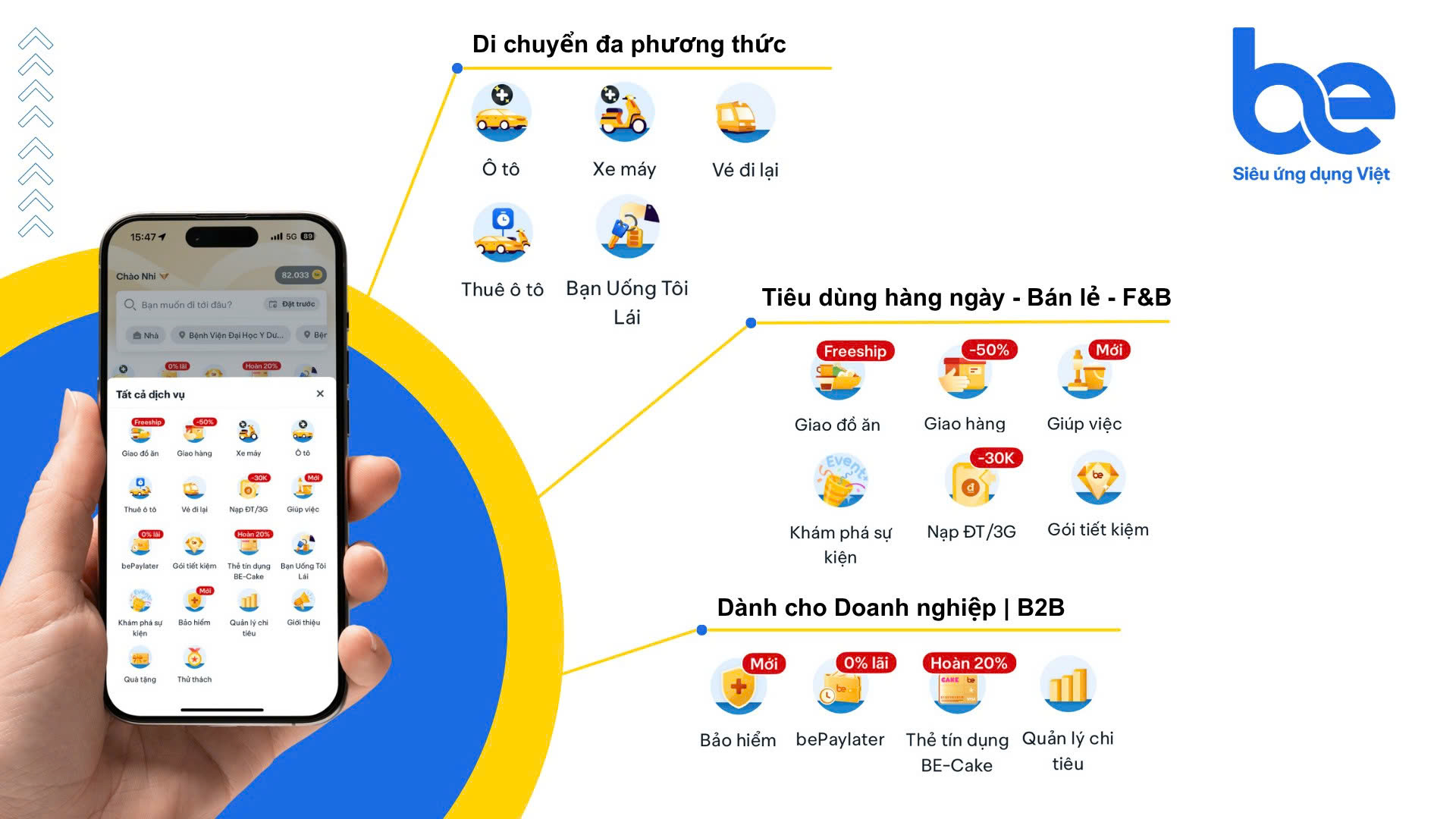 Điểm khác biệt chiến lược của Be là tư duy xây dựng một nền tảng mở và coi trọng hợp tác lâu dài. Hơn 100.000 đối tác trải rộng từ tiêu dùng, bán lẻ, du lịch, giải trí, nhà hàng, ngân hàng đến thanh toán đều đang gắn kết cùng BE trên cả hai trục: công nghệ và chiến lược kinh doanh. Chính sự liên kết chặt chẽ này không chỉ tạo nên một hệ sinh thái số toàn diện, mà còn mở ra tương lai – nơi chuyển đổi số của từng ngành được thúc đẩy mạnh mẽ, cộng hưởng thành sức bật chung cho nền kinh tế.