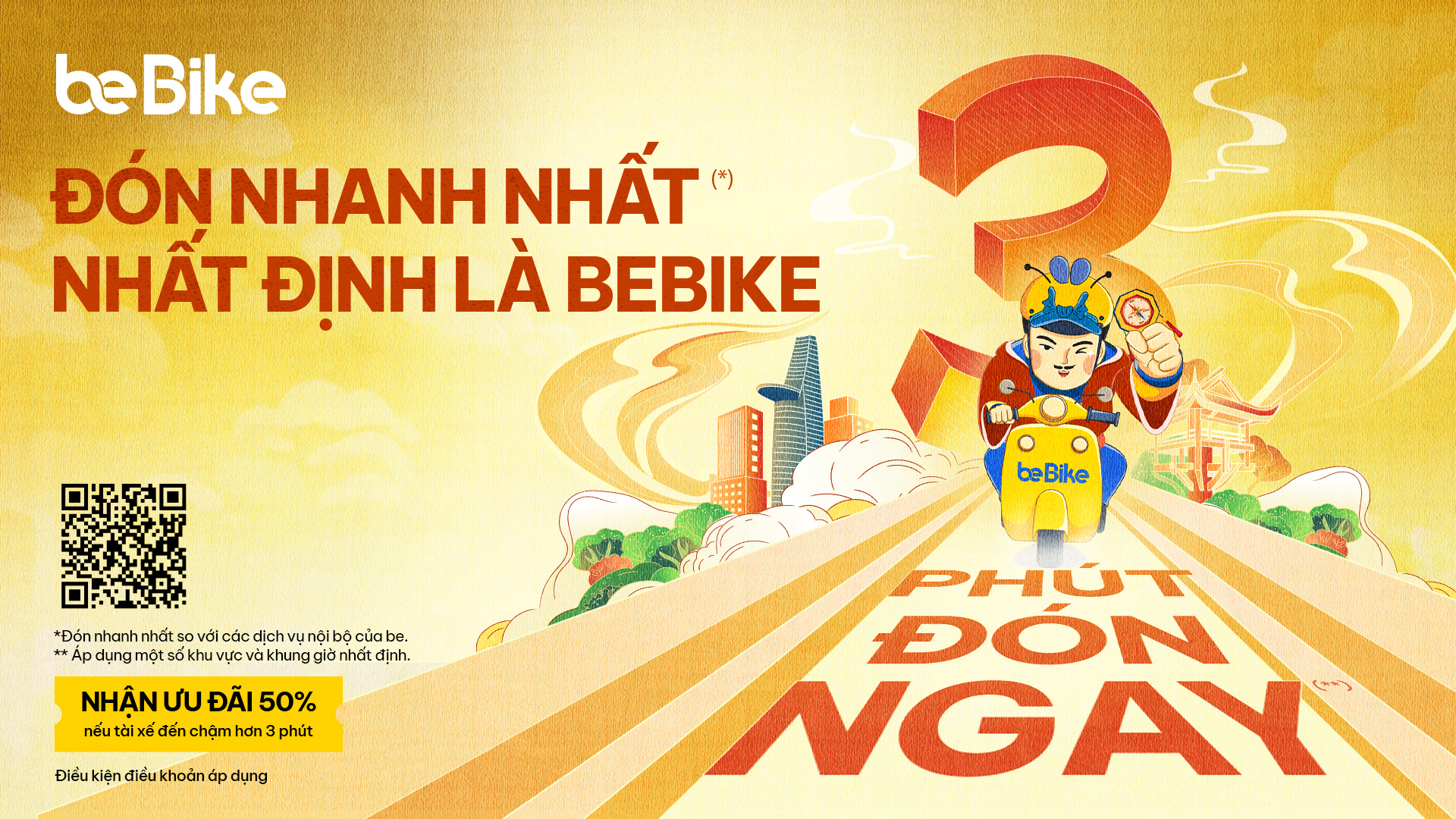 beBike đón nhanh trong 03 phút, tài xế đến chậm tặng 50% chuyến tiếp theo